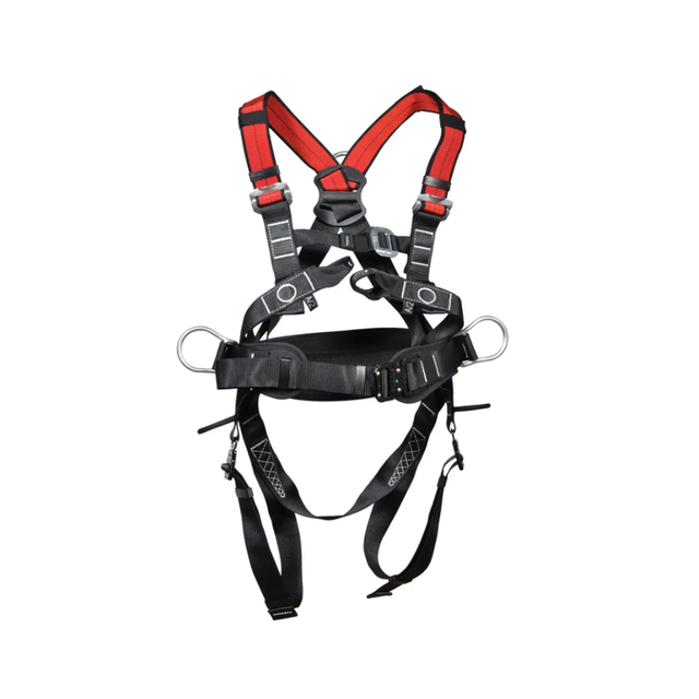 Imbracatura con cintura ergonomica dotata di cinghie elasticizzate e fibbie rapide.
